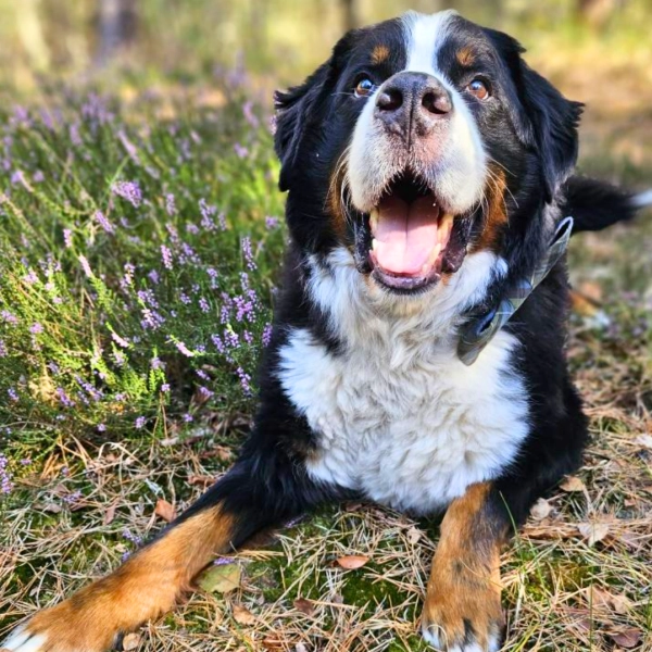 Milo is de grootste speelvogel van het gezin. Of het nu een bal is om achteraan te jagen, een stok om op te kauwen, of gewoon lekker rondrennen, Milo geniet volop van buiten te zijn. Om hem uit te dagen wordt er dagelijks getraind met als beloning Voskes training treats. Hij lust ze allemaal graag, maar de treats met zalm zijn toch zijn favoriet!