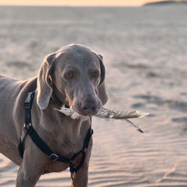 Deze Weimaraner is al 9 jaar jong, maar in haar hoofd is ze nog steeds een puppy! Ze geniet van alles wat het leven te bieden heeft: spelen, zwemmen, lekker eten én natuurlijk knuffelen op de zetel. Djune ontdekte Voskes dankzij haar beste vriendin @Beagle_pippa. Samen hebben ze al wat van onze snacks kunnen uitproberen en die zijn goedgekeurd!